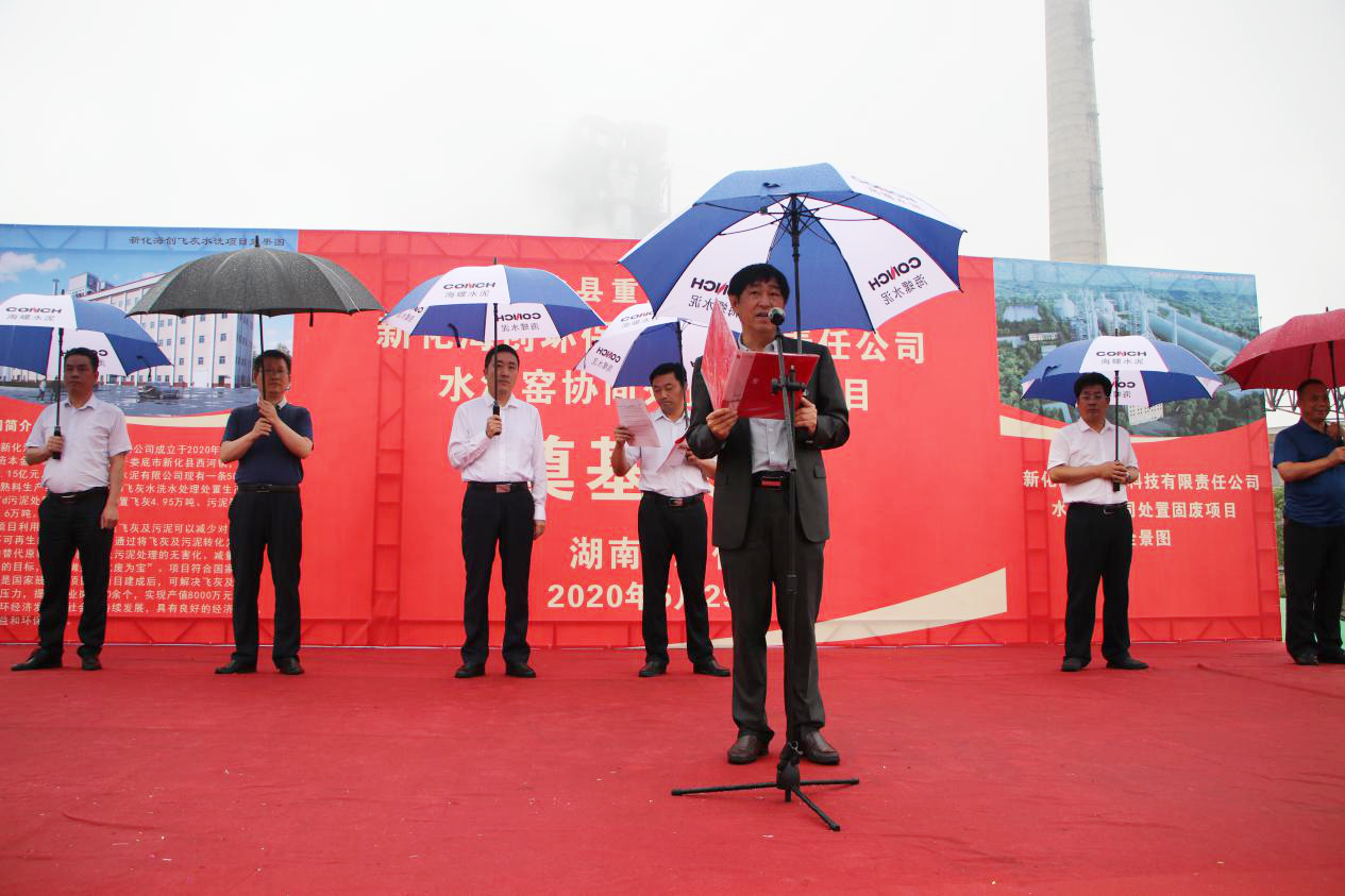 中共新化縣委副書記周海強同志致辭。他說,新化海創水泥窯協同處置固廢項目是縣招商引資工作的一件大事,也是產業發展進程中的一件喜事。項目的引進,對促進我縣經濟結構轉型升級和社會可持續發展具有十分重要的意義。他強調,縣直各部門要繼續把項目工地當做陣地,把項目現場當做考場,把項目進度當做尺度,創造寬松的施工環境,全力以赴搞好項目服務。