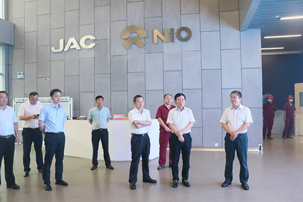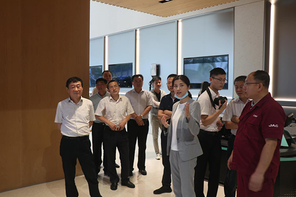 郭景彬董事長受邀先后參觀了江淮汽車蔚來工廠、新能源汽車總裝車間,體驗了新能源汽車和智能制造技術(shù)運(yùn)用,了解到了現(xiàn)代汽車生產(chǎn)的工藝流程、裝備技術(shù)、智能制造和環(huán)??刂?。據(jù)介紹,該蔚來基地規(guī)劃年產(chǎn)能10萬輛,車身車間可通過307臺機(jī)器人實現(xiàn)車身主要連接100%自動化,車間整體自動化率97.5%,是目前國內(nèi)最新的全鋁車身生產(chǎn)線,蔚來的兩款量產(chǎn)車型ES8和ES6均在這里生產(chǎn)制造。