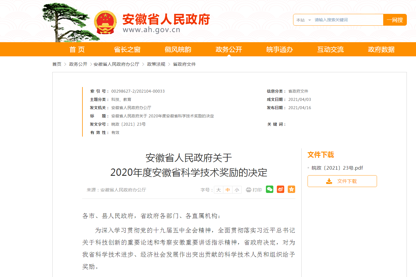 近日,安徽省人民政府發(fā)布了《安徽省人民政府關(guān)于2020年度安徽省科學(xué)技術(shù)獎(jiǎng)的決定》(皖政【2021】23號(hào))文件,對(duì)2020年度推動(dòng)安徽省科學(xué)技術(shù)事業(yè)進(jìn)步和經(jīng)濟(jì)社會(huì)發(fā)展做出突出貢獻(xiàn)的科技人員和組織給予獎(jiǎng)勵(lì)。海螺創(chuàng)業(yè)憑借《水泥窯協(xié)同資源化處理城市廢棄物系統(tǒng)集成關(guān)鍵技術(shù)開(kāi)發(fā)與應(yīng)用》重要科研成果榮獲安徽省科學(xué)技術(shù)獎(jiǎng)三等獎(jiǎng),這是海螺創(chuàng)業(yè)首次獲得該獎(jiǎng)項(xiàng)。