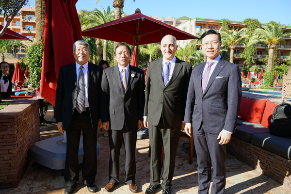 ??? 11月7日下午,經過20多小時長途飛行抵達馬拉喀什,紀勤應總經理一行受到摩中商會會長金曼德先生、摩洛哥外貿銀行國際部主管Abdou先生的熱烈歡迎,雙方在下榻的酒店進行了會晤。