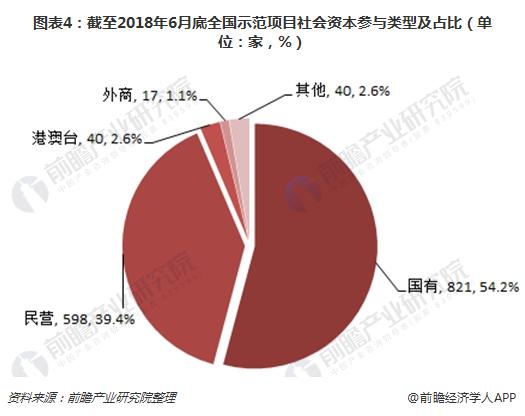 ? ? PPP模式發展的目的一是鼓勵社會資本參與到公共基礎設施項目的建設中,加快城市化進程;二是拓寬公共基礎設施建設項目融資渠道的同時,讓社會資本參與建設。從全國落地示范項目合作主體來看,民營企業積極參與了PPP項目的建設,截至2018年6月底,866個落地示范項目中包括448個獨家社會資本項目和418個聯合體項目。簽約社會資本共1516家,包括民營598家、港澳臺40家、外商17家、國有821家,另有類型不易辨別的其他40家,其中民營企業占比39.4%,僅次于國有企業。