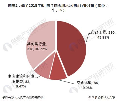 ? ? 從個行業落地項目占比來看,在866個落地示范項目中,市政工程類占據絕對領先優勢,項目數量達380個,占比43.9%;其次為交通運輸類,共計86個示范項目,占比9.9%;生態建設和環境保護類以82個示范項目位列第三,占9.5%;其他各類共318個,占36.7%。