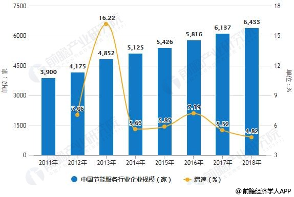 2011-2018年中國節能服務行業企業規模統計及增長情況預測