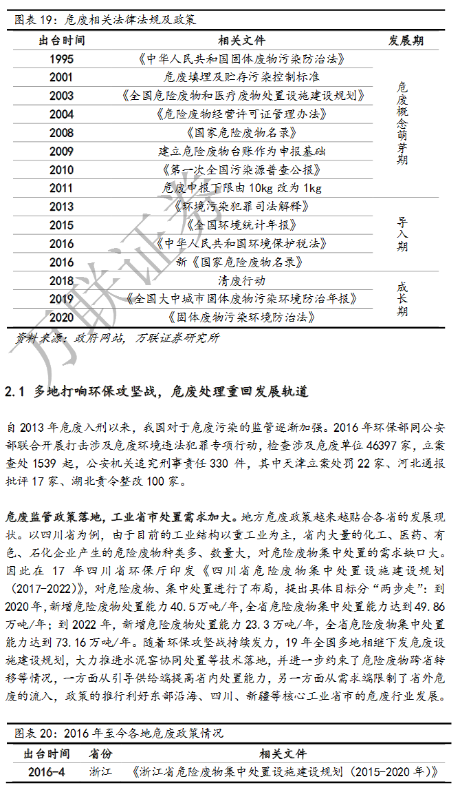 北極星固廢網(wǎng)獲悉,萬聯(lián)證券測算2020年工業(yè)危廢年產(chǎn)量已超過1億噸,但由于持證企業(yè)產(chǎn)能利用率低、處置種類錯配等因素,持證危險廢物處理規(guī)模僅達(dá)34%,CR8僅達(dá)28%。伴隨政策落地以及運營監(jiān)管的加強,未來行業(yè)將逐漸規(guī)范化,龍頭企業(yè)將迎來新的一輪合并期,市場占有率將進一步提升。