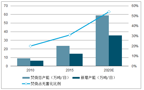 2010-2020年中國垃圾焚燒處理能力發(fā)展情況