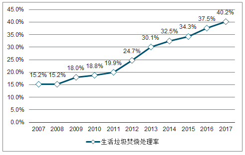 2005-2017年中國城市生活垃圾焚燒處理率
