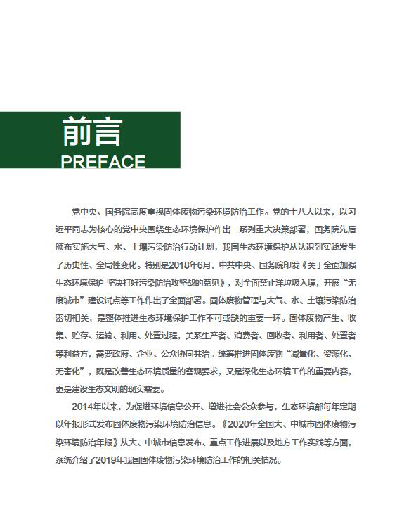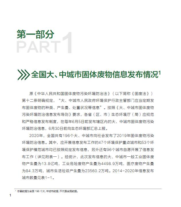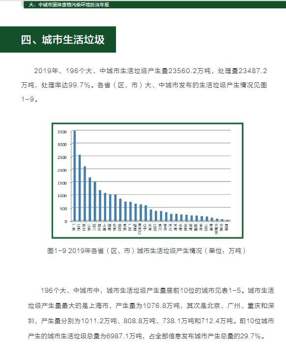 近日,《2020年全國(guó)大、中城市固體廢物污染環(huán)境防治年報(bào)》公布。
