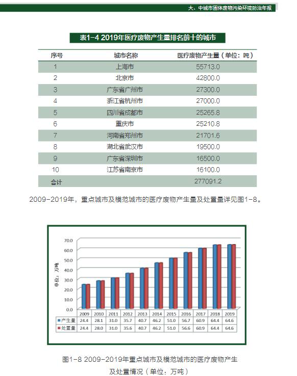 2019年,196個(gè)大、中城市醫(yī)療廢物產(chǎn)生量84.3萬(wàn)噸,產(chǎn)生的醫(yī)療廢物都得到了及時(shí)妥善處置。