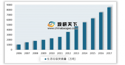 ? ? 從2006年到2017年生活垃圾清運量和生活垃圾焚燒量的數據來看,2017年全國生活垃圾清運量為2.15億噸,生活垃圾焚燒量為8463萬噸,生活垃圾焚燒率為39.33%。盡管焚燒率逐年提高,但總體仍較低水平。