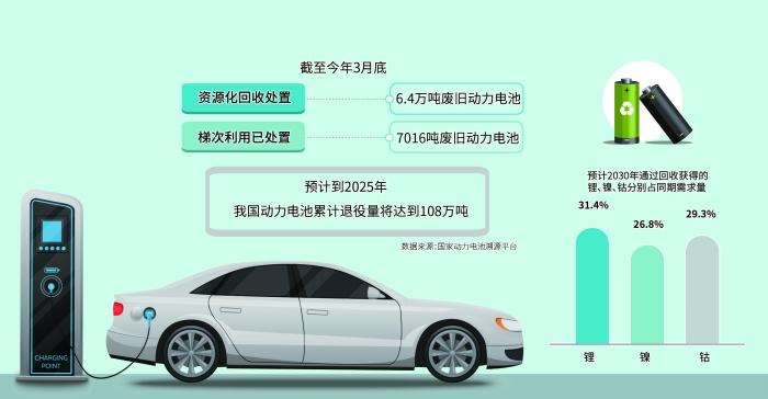 據(jù)國(guó)家動(dòng)力電池溯源平臺(tái)數(shù)據(jù)分析,截至今年3月底,我國(guó)再生利用企業(yè)已資源化回收處置6.4萬(wàn)噸廢舊動(dòng)力電池,梯次利用已處置7016噸廢舊動(dòng)力電池,并以此生產(chǎn)了780MWh的梯次產(chǎn)品。與此同時(shí),基于動(dòng)力電池產(chǎn)銷量和生命周期,預(yù)計(jì)到2025年我國(guó)動(dòng)力電池累計(jì)退役量將達(dá)到108萬(wàn)噸。