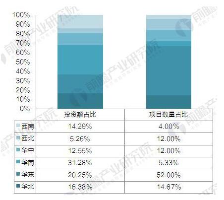 ? ? 分區(qū)域來(lái)看,華東地區(qū)的垃圾發(fā)電建設(shè)項(xiàng)目最多,共有39個(gè),占比達(dá)到52%,但投資總額低于華南地區(qū),僅為13.41億元;華南地區(qū)僅有4個(gè)新項(xiàng)目建設(shè),但投資額達(dá)到20.71億元,占比高達(dá)31.28%;西南地區(qū)的項(xiàng)目數(shù)量、西北地區(qū)的投資額為最低,分別為3項(xiàng)、3.48億元。