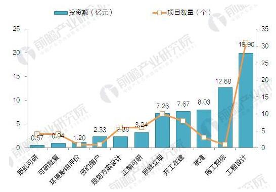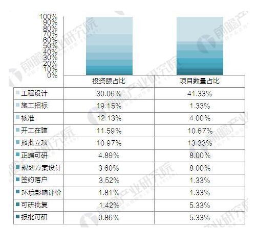 ? ? 從項(xiàng)目所處階段來(lái)看,工程設(shè)計(jì)階段的垃圾發(fā)電建設(shè)項(xiàng)目最多,共有31個(gè)、19.9億元投資額的在建、擬建項(xiàng)目,項(xiàng)目數(shù)量、投資額占比分別為41.33%、30.06%;其次是施工招標(biāo),雖然只有1個(gè)項(xiàng)目,但投資額達(dá)到12.68億元;處于報(bào)批立項(xiàng)階段的項(xiàng)目數(shù)量共10個(gè),僅次于工程設(shè)計(jì)階段,投資額為7.26億元;尚無(wú)已竣工運(yùn)營(yíng)的項(xiàng)目。