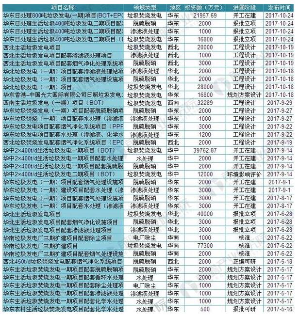 附:2017年1-10月中國(guó)垃圾發(fā)電建設(shè)項(xiàng)目匯總