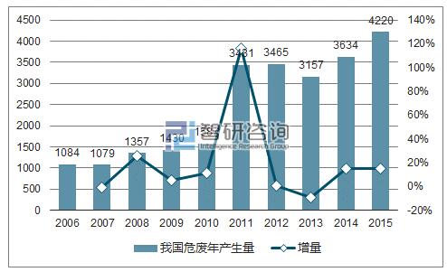 2006-2015年我國(guó)危廢產(chǎn)生量