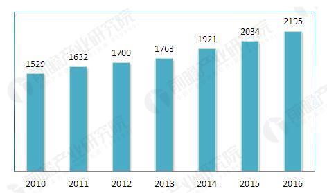 圖表3:2010-2016年全國危險廢物經營許可證數量情況(單位:份)