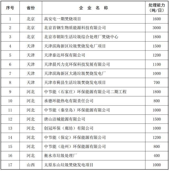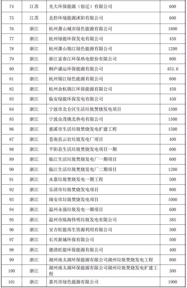 2017年以來全國垃圾發電擬建項目匯總