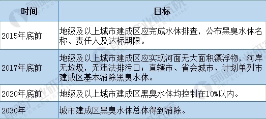 ? ? 而《水污染防治行動(dòng)計(jì)劃》明確提出,黑臭水體治理目標(biāo)要求:到2020年,地級(jí)及以上城市建成區(qū)黑臭水體均控制在10%以?xún)?nèi);到2030年,城市建成區(qū)黑臭水體總體得到消除。